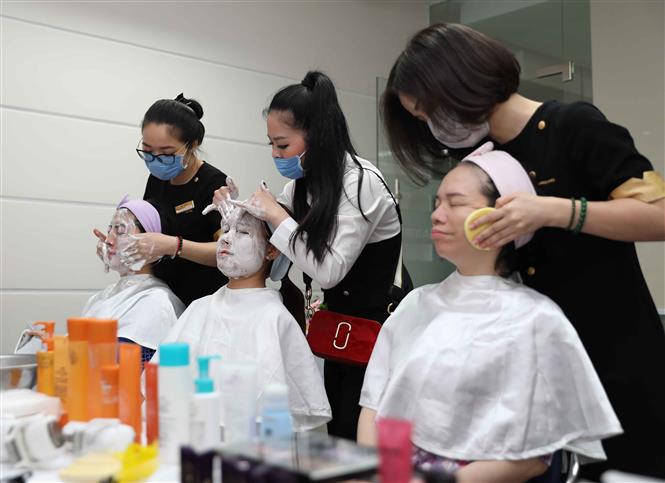 Các chị em được làm sạch da và tư vấn chăm sóc da theo độ tuổi, loại da